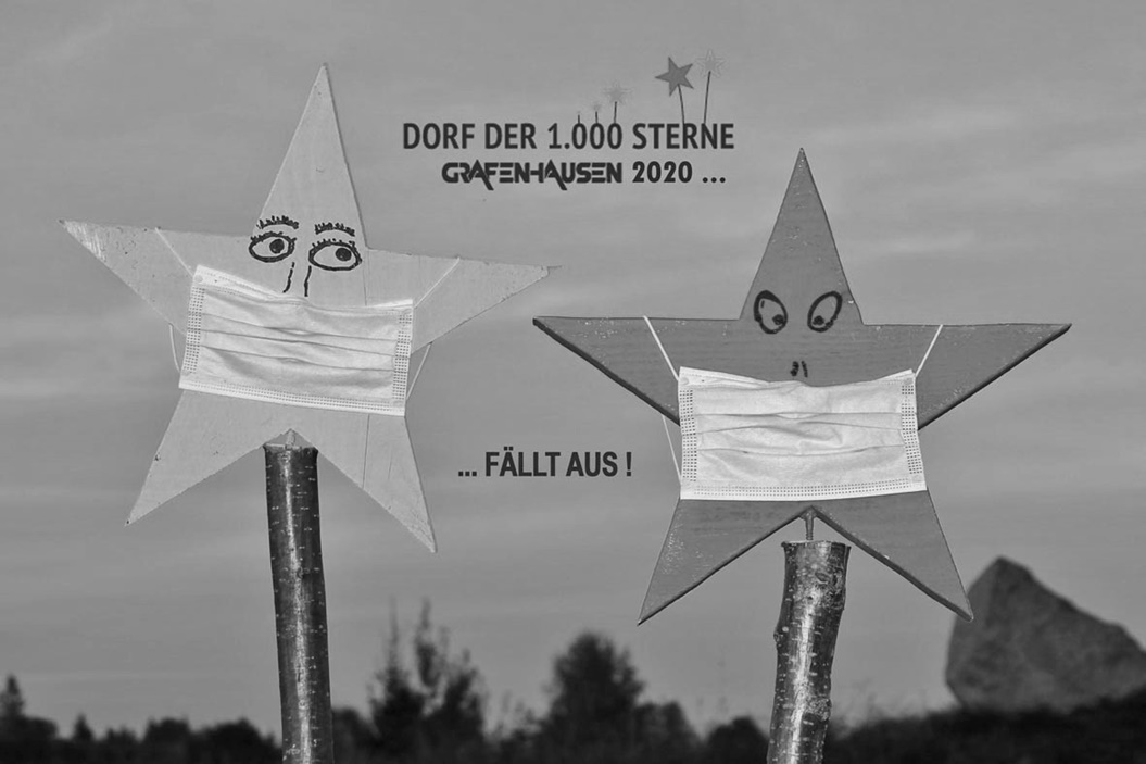 Entgegen aller Befürchtungen fiel das "Dorf der 1000 Sterne" dem Virus nicht komplett zum Opfer. Selbst in der Wintersaison 2020/2021 betrug der Erlös der Aktion über 9000,- €, die einem guten Zweck zugeführt werden konnten. Das gesellschaftliche Miteinander blieb dagegen weitgehend auf der Strecke. Um - informativ - trotzdem ein klein wenig Spaß in das Mitteilungsblatt der Gemeinde Grafenhausen zu bringen, dachten wir uns kleine Geschichten zu zwei ganz besonderen Grafuser Sternen aus: Starlet & Sternke.