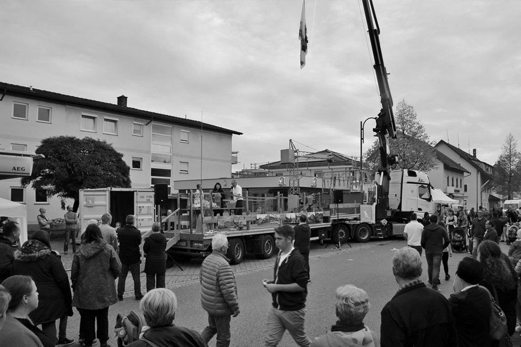 Auch in Endingen zeigten wir im Oktober 2018 Flagge - bei der Firma S-Tech und beim Stapeln heimischer Bierkästen.