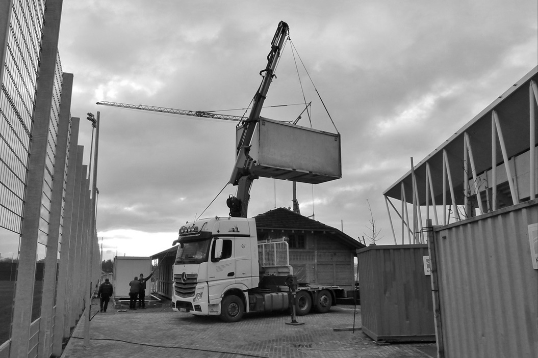 Das Jahr 2020 bescherte - Corona sei Dank - der TBD-Gruppe keine spektakulären Fernverkehrstouren. Dennoch durften wir für unsere Stammkunden viele Transporte und interessante Projekte durchführen. So waren wir, kurz vor Weihnachten, z.B. zu Gast beim SC Freiburg - im alten und im neuen Stadion. Im Luxemburgischen Bleesbrück revolutionierten wir den (nicht-) öffentlichen Nahverkehr. Schon im Sommer hatten wir zwei Schleppräumer in eine Kläranlage im Oberwallis gebracht - und diese über das Gebäude hinweg in die Becken eingesetzt.