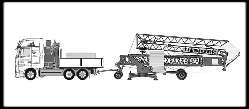 Alternativ können - mit Hilfe der abnehmbaren Sattelkupplung der Zugmaschine - auch Baukrane mit Königszapfen (wie Sattelauflieger) gezogen werden.